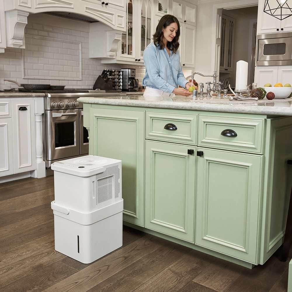 CONTINUOUS DRAIN OPTION – Versatile, no-bucket option provides more flexibility to remove moisture. You can remove the water tank and place the unit above the sink using the included drain hose, or position it over a floor drain, near a window or door.