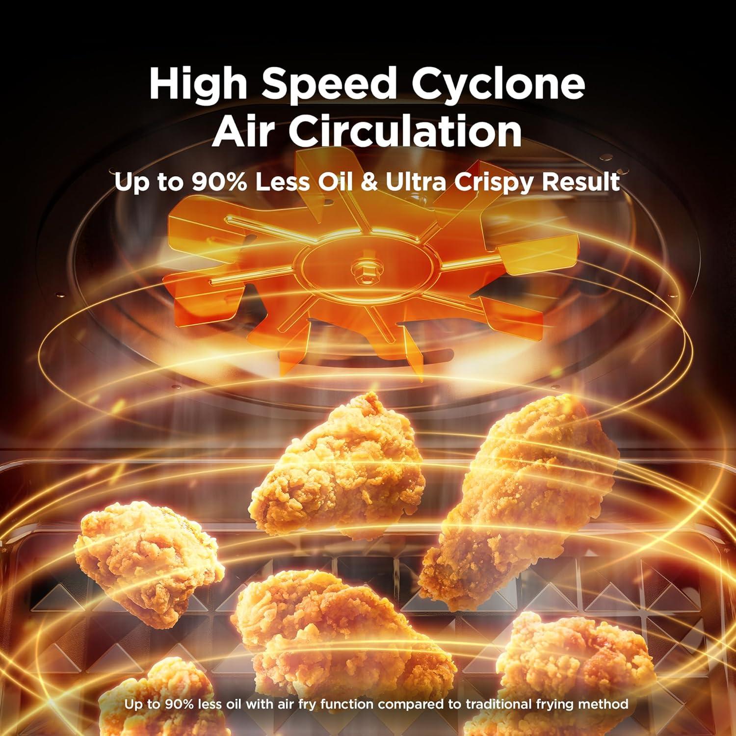 10+4 Cooking Versatility: Switch seamlessly between Air Fry, Roast, Bake, Broil, Toast, Pizza, Dehydrate, Slow Cook, Reheat, and Warm. Enjoy 10 essential functions plus 4 specialty modes—including a dedicated Pizza Mode—for everyday meals and gourmet dishes.