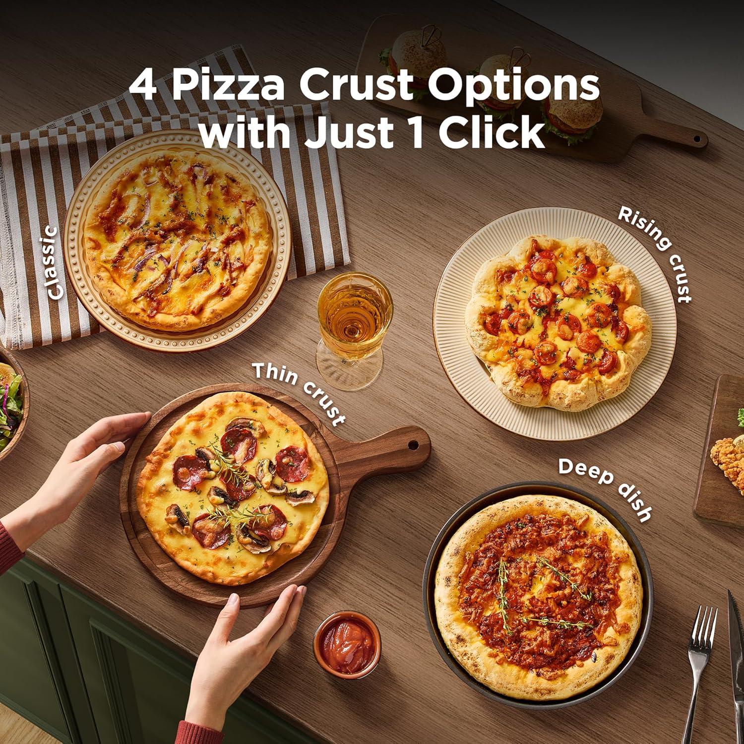Artisan Pizza Perfection: Bring pizzeria-level craftsmanship to your countertop. Choose from four crust options; classic, thin crust, rising crust, or deep dish, to achieve your desired texture. With precise heat control and even browning, every pizza is baked to perfection.