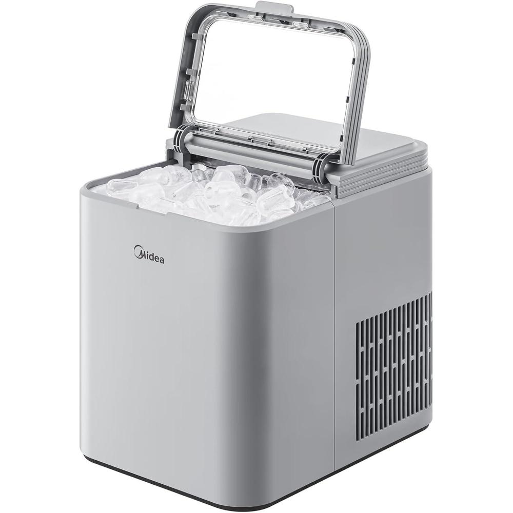 imageMidea MERI26B1AGY Ice Maker Countertop 26lbs Portable Ice Maker 8 Cubes Ready in 6 Mins SelfCleaning with Ice Basket and Scoop 2 Sizes of Bullet Ice for Home Camping Office PartyGrey